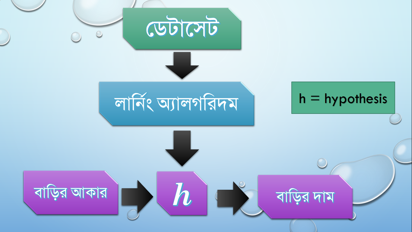 তাহলে বোঝা গেল কীভাবে মডেল প্যারামিটারের ভ্যালু ধরে নিয়ে আমরা হাইপোথিসিস ফাংশন দিয়ে ভ্যালু প্রেডিক্ট করলাম।