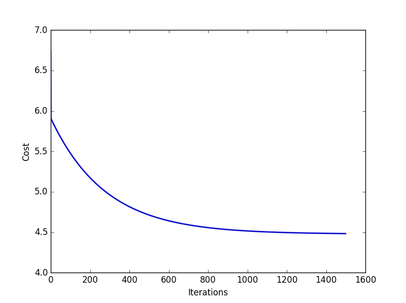 cost.append(computeCost(X, y, theta))