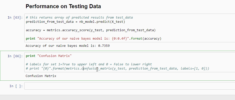print ("Accuracy of our naive bayes model is: {0:0.4f}".format(accuracy))আউটপুট